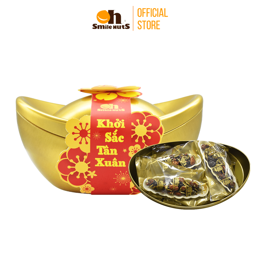 Bánh thuyền hạt Oh Smile Nuts là sự kết hợp phong phú, hài hòa từ vị bùi béo và chua nhẹ của nho đen, nhân bí xanh, hạt hạnh nhân, nhân óc chó, và đường chà là. Chúng được gói gọn trong chiếc vỏ bánh giòn, xốp được làm từ gạo nếp và tạo hình như một chiếc thuyền nhỏ. Đây là lựa chọn tuyệt vời cho một món ăn vặt tiện lợi và giàu dinh dưỡng, cung cấp đa dạng chất dinh dưỡng từ nhiều loại hạt khác nhau.