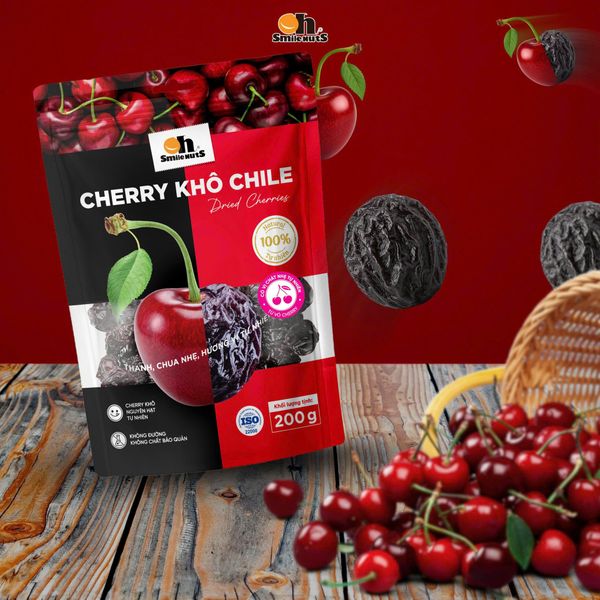 Cherry Chile Sấy Khô là dòng sản phẩm nhập khẩu cao cấp, được chế biến từ những quả cherry đỏ mọng tuyển chọn kỹ lưỡng từ vùng đất Chile – nơi có khí hậu lý tưởng cho trái cây phát triển tự nhiên, giàu dưỡng chất. Sau khi thu hoạch, cherry được sấy khô bằng công nghệ hiện đại, không sử dụng chất bảo quản, giữ nguyên vị ngọt dịu, mềm dẻo và hàm lượng dinh dưỡng cao. Đặc biệt, sản phẩm được sản xuất và đóng gói tại nhà máy đạt tiêu chuẩn ISO 22000 đảm bảo an toàn tuyệt đối cho người tiêu dùng.