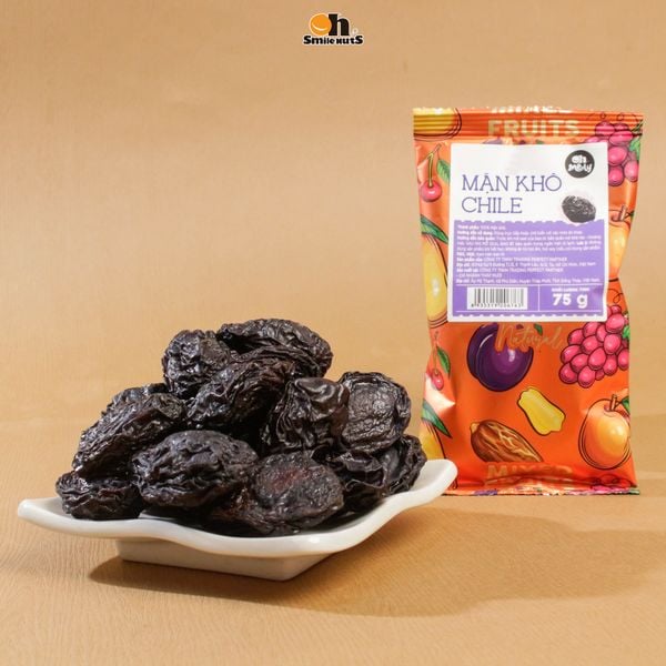 Mận khô Chile 75g, 100% nguyên chất, vị ngọt tự nhiên, giàu chất xơ & vitamin. Ăn vặt tốt cho tiêu hóa, tim mạch, đẹp da. Tiện lợi, dễ sử dụng.