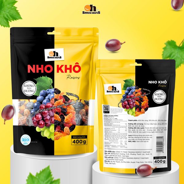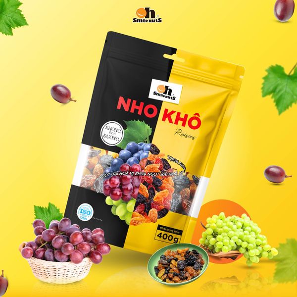 Nho Khô Mix 3 Loại Không Hạt Oh Smile Nuts Túi Zip 400g – Vị Chua Ngọt Tự Nhiên – Ăn Vặt Tiện Lợi