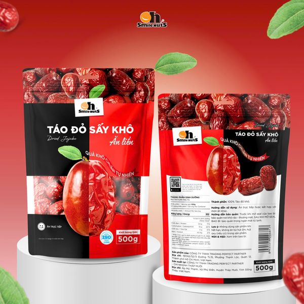 - Tên sản phẩm: Táo Đỏ khô thượng hạng Tân Cương Smile Nuts gói 500g